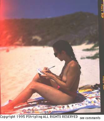 This is Veronique on Grand Saline beach in August of 1991. She's using an archaic ballpoint pen to send a postcard to her friends in Paris. Talk about snailmail! It'll take weeks! She'll be home before the postcard is. And lucky you sitting at your terminal communicating with the world at the speed of light (or 14.4kbps which is not the same). Where would you rather be this August? If you want my advice, I wouldn't go back to St. Barth in the summer, and not for fear of a water shortage. But many people disagree. If you really like solitude (see the lack of crowd on the beach?) and want nothing to do but lay around all day and enjoy the beaches, then it's just for you. Be prepared for water shortages. There may be more rain because August and September are the rainy seasons (but even with more rain, it won't be enough to spoil your vacation). But be more prepared for restaurants and stores to be closed and for the residents to be gone on vacation.