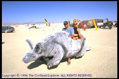 All photographs in The Civilized Explorer Burning Man 1996 pages are Copyright © 1996 The Civilized Explorer. ALL RIGHTS RESERVED. You may make a copy of the photographs for your personal use, but you cannot display them publicly nor may you cause them to be displayed publicly either by direct copy or by making a link to any of the photographs. You may contact us for a license to use any of the photographs for public display.
